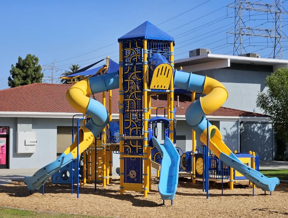 Step into a fantasy world of play with winding playground slides offered by Pacific Play Systems for communities within San Diego, Los Angeles, San Bernardino, Riverside, Imperial, and Orange County.